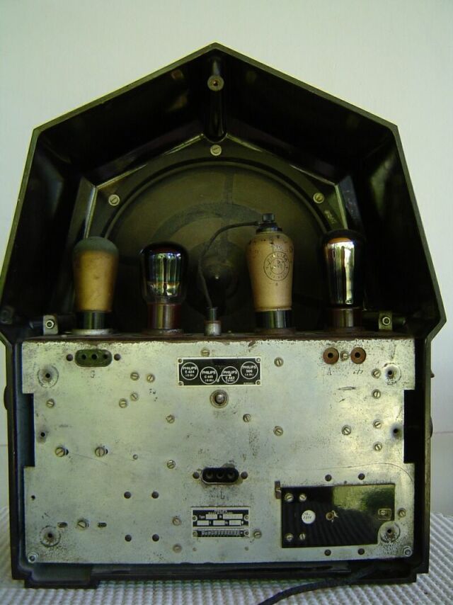 Bakelite, with cloth metal grille |